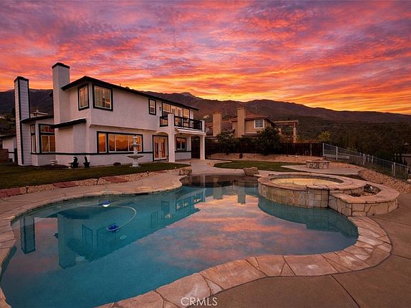 Step outside to your private resort-style backyard, where a sparkling pool and Jacuzzi are perfectly positioned to capture panoramic views of the surrounding mountains and city lights—an ideal setting for relaxation or entertaining under the stars.
