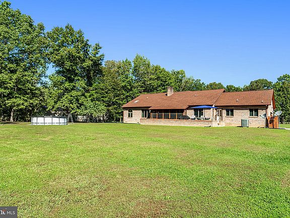 Discover this all-brick custom home set on over 5.7 acres of peaceful countryside. Tucked at the end of a long private drive, it offers a sense of seclusion while still being close to local conveniences. Inside, gleaming hardwood floors flow through the main living areas, and a central fireplace creates a cozy gathering space. The spacious eat-in kitchen pairs perfectly with a formal dining room, giving you room for both casual meals and special occasions. The primary suite offers a private retreat with a full bath and dual walk-in closets. Two additional bedrooms and a half bath provide space for family, guests, or a home office. Andersen windows bring in plenty of natural light, highlighting the craftsmanship throughout. A two-car attached garage plus a detached garage offer ample storage or workshop potential. Step outside to enjoy a screened pavilion, open patio, and fruit trees, all surrounded by mature woods for year-round privacy. This is a place where you can relax, entertain, and truly feel at home.