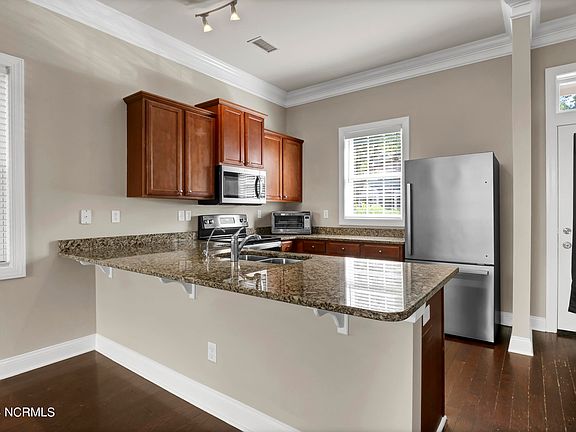 Charming 2 bedroom 2.5 bath townhome located in the Exton Park subdivision in Castle Hayne, just minutes from Wilmington and Wrightsville Beach. This townhome was recently painted throughout and features engineered hardwood flooring throughout the main living area. The kitchen is equipped with stainless steel appliances, granite countertops, reverse osmosis water filtration system, pantry, lots of cabinet and counter space, eat at bar, and washer dryer closet equipped with washer and dryer. The kitchen is also open to the living room which features storage under the stairs, sliders leading to the back patio and the half bath. Venture up the stairs to one bedroom at the top of the stair that feature carpeted flooring, closet with built ins and an ensuite bathroom with tile flooring and a tub/shower combo. The master bedroom is located down the hall and features carpeted flooring, walk in closet with built ins and an ensuite bathroom with tile flooring and a walk in shower. There are 2 designated parking spaces located right in front of the townhome and the community pool and clubhouse is located right behind the townhome. Pets are negotiable. No smoking