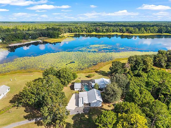 Lakefront Luxury Living in Keystone Heights. Experience resort-style living every day at this stunning, fully renovated 2-bedroom, 2-bath lakefront home on 4.22 private acres overlooking beautiful Hall Lake. Inside, you’ll find a completely updated interior featuring wood-look tile flooring throughout, a spacious open-concept layout, and a modern kitchen with stainless steel appliances and a large center island—perfect for entertaining. The spacious owner’s suite features a walk-in closet and a beautifully designed bathroom with intricate tile work and a glass-enclosed shower. Step outside to your own private oasis. Enjoy breathtaking lake views from the screened back porch or relax by the resort-style pool and spa. The poolside cabana is designed for ultimate enjoyment, featuring a fully stocked bar, double-sided industrial sink, and a full bathroom with custom wood and stone detailing. Additional highlights include a detached 3-car garage with second-story attic storage, covered carport parking for your boat, and an extra-large storage shed. The durable metal roof and thoughtful updates throughout make this home move-in ready and built to last. Whether you’re looking for peaceful lakefront living or the perfect property to host and entertain, this Keystone Heights retreat offers the best of both worlds — luxury, privacy, and relaxation all in one.