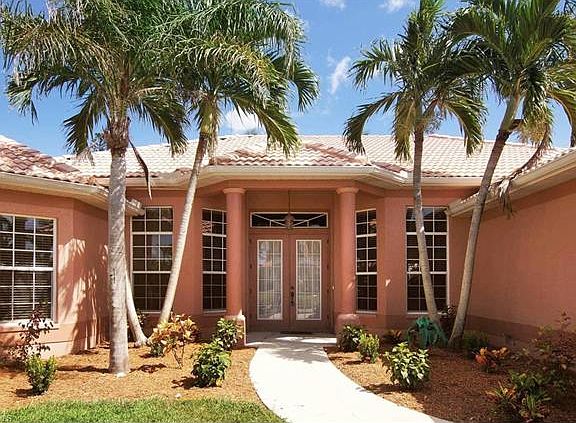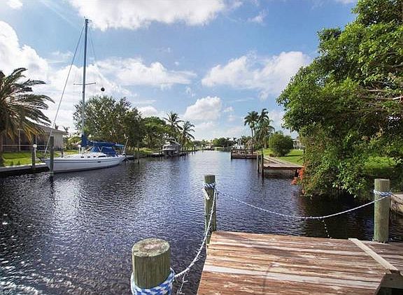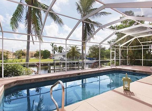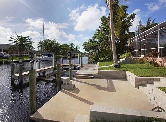 DIRECT SAILBOAT ACCESS. No bridges to the Gulf of Mexico. Great location and an easy walk to downtown Cape Coral or Cape Coral Beach and fishing Pier. Well-kept home, built in 2000. Large Great Room with spacious kitchen and Breakfast Bar. Newer AC Unit (2013). Three bedrooms, plus an office set aside. High ceilings with plenty of space to move around. Pocket sliding doors, pool bath and outdoor shower. Boatlift, sprinkler system and storm windows. Quiet Cul-de-sac Street with assessments paid.
