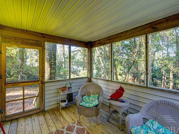 This location is perfect for year round living or a second home! Just over the Wright Memorial bridge, nestled in a small cul-de-sac, this well maintained spacious home is ready for someone to make it their own. With a newer roof, septic drain-field and areas that have been freshly painted, this home is move in ready. Flood Insurance around $500 per year.  The spacious kitchen (with tons of counter space) opens up to a beautiful living room that features a large screened in porch that is perfect for any season. Off of the kitchen there is another den with high ceilings and windows. With the addition of some extra lighting and a splash of color, this den could the perfect space for relaxing or office.   The three bedrooms are at the opposite end of the home and are ample sizes with large closets. This home offers up two, full size bathrooms (one attached to the largest primary bedroom).   The garage is large and spacious with plenty of room to park a vehicle or storage for tools and bikes. Perfectly situated on the lot, this home feels very private and away from the hustle and bustle of Kitty Hawk just a few miles away. In order to appreciate the privacy, location and general upkeep of this home, you must see it.