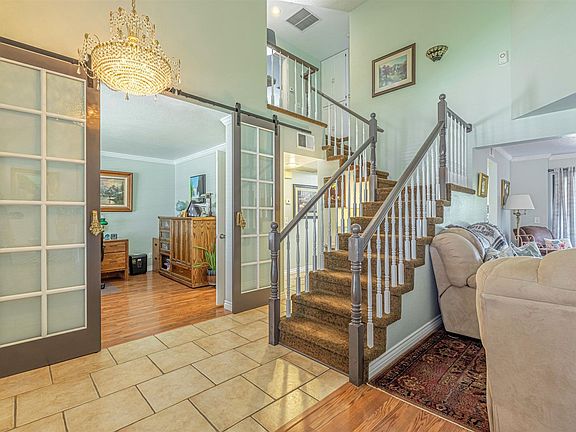 This home is in the heart of Quartz Hill & feels like a model home w/ Tons of custom enhancements! Vaulted ceilings Upon entry , w/ an open floor plan. The master suite & 2 large bedrooms are upstairs. Downstairs is an office/Den w/ custom barn doors, That could be a 4th bedrm & a bonus room off the kitchen. The Upgraded Spacious Kitchen has Granite Counter Tops, custom back splash, Large custom Pantry, lots of cabinets & a Gorgeous View of the private park like Back Yard Garden Oasis & Patio. Interior Features have lots of custom upgrades; upgraded Flooring Light Fixtures, crown molding, Large Picture Windows, designer Interior Paint, upgraded bathrooms, Spacious Formal Living Room & Formal Dining Room. The Master Suite has his & hers closets, one being a huge walk in, Upgraded Ceiling Fan, & flooring. Enjoy the enchanted garden w/ full irrigation. Save on the AC bill w/ a custom ducted evaporated cooling system & central AC. Close to schools, Walking distance to parks, dining