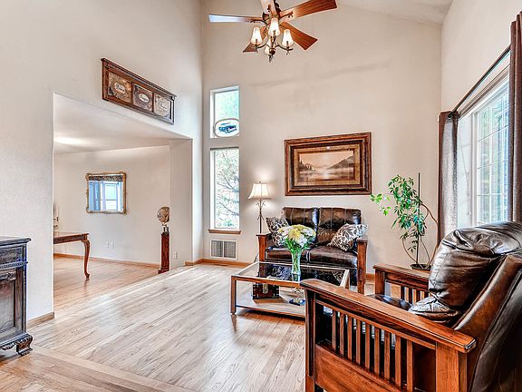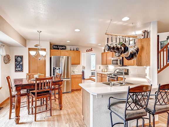 Amazing 5 BR 4 BA family home on corner lot in Jackson Farm within Cherry Creek School District. Beautiful natural wood floors throughout entire main level which includes a formal dining room, formal living room, eat-in kitchen and family room with gas fireplace, powder room and laundry. 4 bedrooms and two full baths on upper level. Serine master bath has recently been updated and main hall bath has two sinks and linen closet. Awesome light and bright Garden Level basement finished perfectly for game room, gym, entertainment area, etc, Bedroom with closet and stunning 3/4 Bath. It also has a built-in desk area perfect for crafts or home office. Nice deck off kitchen/family room, spacious yard with garden area and raised planters as well as a dog run and shed. 3 Car garage and driveway with basket ball hoop, potential RV parking with access fence to back yard. Newer roof, newer HW heater. Easy quick walk to elementary school, close to walking paths/park area, and minutes to grocery store, Southlands mall shopping, trails & highways! You will love this home!