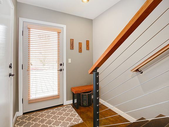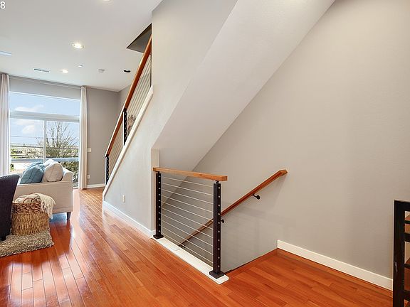 Fantastic modern townhouse style condo located in Johns Landing! Light and bright with high ceilings, hardwood floors and peek a boo views of the river and Mt. Hood. Gourmet kitchen with granite counters, large island & SS appliances. Top floor master with 2 walk in closets, laundry and spacious master bath. Attached 1 car garage & private outdoor space. Moments to Elephants Deli, Downtown, OHSU Tram, Willamette Park & bus lines.