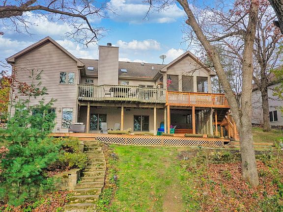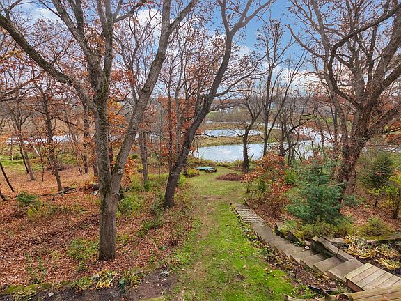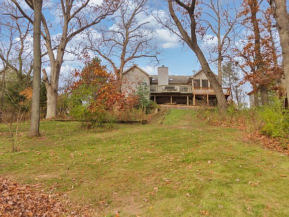 This gorgeous Ranch home with finished walkout basement is located high on a hill overlooking the ponds, mature trees and spectacular views with one of the nicest lots in the subdivision. It boasts 9 ft ceilings, 3 fireplaces, 1st floor laundry, vaulted ceilings, screened porch, tons of storage, gorgeous 2 level deck & upgraded energy package. The large entryway leads you into the living room with cathedral ceiling, wood burning fireplace and hardwood floors with carpet inlay. The completely updated kitchen boasts 42" white cabinets with crown molding, double oven, gas cooktop, all stainless steel appliances, solar tube light, pantry, hardwood floors, bay window seat and plenty of table space. The Master bedroom has trey ceilings, built in electric fireplace, walk in closet and a full master bath with double sink vanity, Whirlpool tub and separate shower. There is also a fully finished walkout basement w/ giant family room, gas fireplace, wet bar, basement bedroom with a huge walk in closet, full bathroom, small office and a large exercise room that could be a 5th bedroom, additional office or workshop. Also, a 3 car insulated garage with epoxy floor, 2 floor drains and a pull down attic stairs for storage. Located on a dead end street this almost 1 acre lot has stairs leading to an open area with a fire pit and access to the ponds. Home Warranty offered!