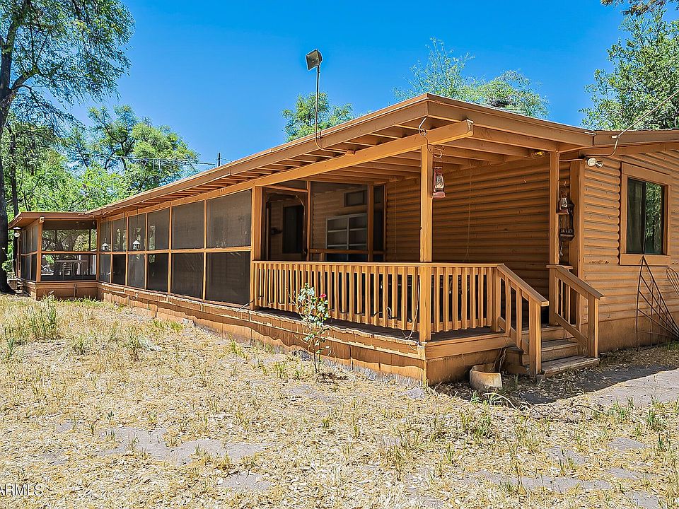Horse property!! Think Relaxation, quiet peaceful surroundings, with few neighbors, & 7.1 acres of trees, and grass. There is a log Cabin appearance to the manufactured home. A full length screen porch is on the south side of the house is a featured part of this home. There are a number of storage buildings, and Carport on the property as well. There are 3 deep wells, and one small well on the property. There Electric in all of the buildings, and hose bibs spread over the property. The large Screened porch on the south side of the house, has room for dining. Large spacious interior, with large bedrooms, and a nice living room family room, and formal dining area. There is a wood burning stove, and lots of wood on the property to use. This is house and yard you must see to believe.