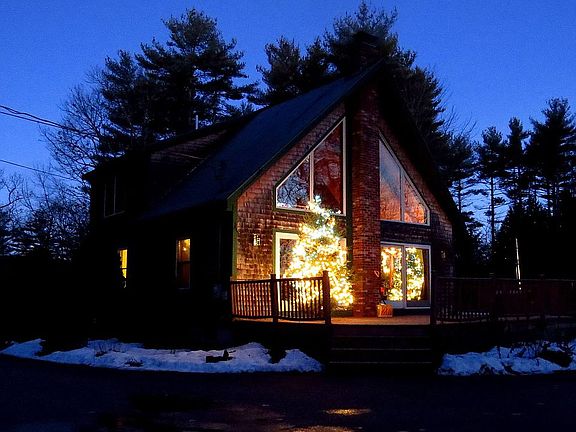 Beautiful Chalet on 2.5 acres located on a hill w/ seasonal views of Mousam Lake in Acton, Maine. Sit on the newly constructed composite deck & enjoy breezes off the lake during the Summer months & overlook perennial gardens. In Winter, the Jotul wood stove keeps the chalet warm & toasty as you watch the views through the large windows & double sliding glass doors. Keep your boat, ATV, motorcycle or multiple vehicles out of the elements in the large barn or basement garage. The two story barn is huge w/ over 2,600 sq ft of storage space. There is an attached Lean-To Shed that provides an additional 480 sq ft of storage out of the elements. Plenty of yard space for enjoying horseshoes, corn hole & the firepit. Inside the chalet, you will find post & beam construction w/ oak cabinets in the kitchen & maple floors on the main floor. The bedrooms on the first & 2nd floor have wide pine boards w/ upstairs primary en-suite having two cedar lined walk-in closets. The home has two 275 gallon oil tanks for a total of 550 gallons of heating oil. It's your choice to heat the home w/ wood or oil. The house comes w/ four cord of 3 year old seasoned hardwood under cover. Step into that ''vacation'' mode at this beautiful chalet-style home or plan to live here all year long. Conveniently located to shopping & hospital in nearby Sanford, as well as only 1 hour from Portland, Maine or Portsmouth, NH, & only 2 house from Boston. If you are a snow ski enthusiast, only 90 min from Shawnee Peak