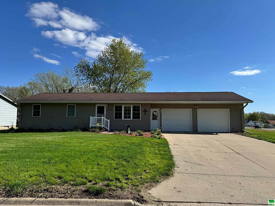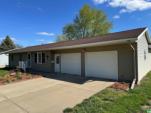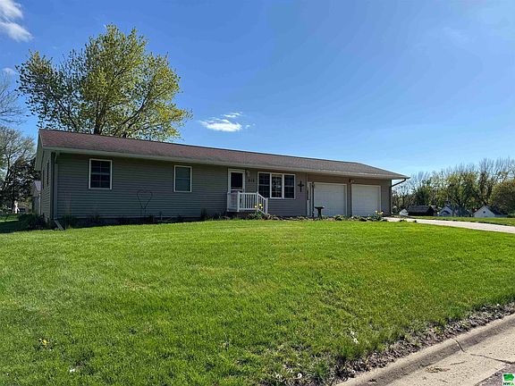 Welcome to this wonderfully spacious 4-bedroom, 2-bathroom, 4-garage home in the small town of Hawarden! Step onto the spacious driveway and be immediately greeted by flowerbeds wrapping the front yard. This cozy ranch-style home features solid cherry wood cabinetry in its galley kitchen with sprawling ambient, natural lighting coming in from many new windows. The adjacent sunroom provides a picturesque dining area with solid wood floors and matching solid wood table (included). Retreat down the hallway to find the master bedroom and 2 additional bedrooms with a full bathroom—all on the main floor. The main living area features large windows with great lighting and recently replaced carpet. The basement is partially finished with 1-bedroom and walk-in closet along with 2 non-egress rooms for plenty of space. This home has an outdoor experience unlike others! This home has an attached 2-stall garage for those cold Midwest months. The spacious backyard is completely fenced in with a long privacy fence, private workshop room, more flower beds and landscape work, a sandbox, and many private entries to access the yard for utility reasons. The back patio is perfect for outdoor entertaining and cooking. The “back-back” yard boasts a large garden area with direct sunlight and additional detached 2-stall garage with electricity for all of your toys! This house has only had one owner since 1990 and was meticulously cared for. The future new owner is assured a move-in-ready experience! New gutters and leaf guards, new windows, new blinds and Four Seasons room with central heat/air. NOT IMPACTED BY RECENT FLOOD. Listing Agent is a relative of the sellers.