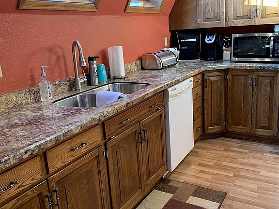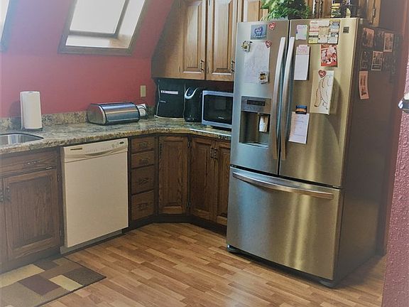 This beautifully designed home has been meticulously cared for and has a sky light that brings in the natural light. This home features a kitchen that was updated in 2014 with stainless steel appliances , easy to care for laminate flooring and has a pantry that is as unique as the rest of the home. Enjoy breakfast in the eat-in nook or the more formal dining area. The main floor bedroom has sliding glass doors that go out to the back deck, where you can enjoy the hot tub in the privacy of the cedar fenced back yard. The gorgeous curved staircase leads to a basement with a bedroom (non egress), a large storage/utility room, a spacious bathroom and a family room that includes a bar. The master bedroom and bath are on the upper level and also accessed from a curved staircase. The maintenance free decks and underground sprinkler system compliment the landscaped yard. The siding and garage doors are newer also. Come see this amazing property!