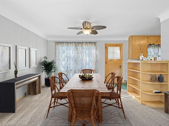 Enjoy one-level living in this charming home, conveniently located within walking distance of downtown Farmington. Fresh paint, new carpet, and newer furnace. Open floor plan with lots of natural light! Huge living room features coved ceilings and a decorative brick fireplace. Built-ins and natural woodwork throughout. Don't miss the extra storage in the carport and large deck!