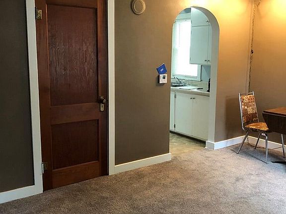 This adorable home would be ideal for a first time home buyer. Features include new carpet and a fresh coat of paint in the roomy living room and bedroom, a galley kitchen with painted white cabinets, a smooth top stove, refrigerator and microwave. The bathroom has a tub/shower combo and a new stool. Full basement houses a newer furnace, laundry room, and a couple finished rooms that would be perfect for exercise equipment, crafts, or a tv room. Steel siding and replacement windows offer a low maintenance exterior. Spacious detached 1 1/2 car garage with automatic door opener. Call today for your private showing!