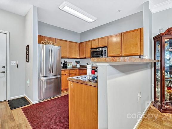 Move-in ready first floor condo in one of the best South Asheville locations! When you enter the condo you'll see an open floorplan from the kitchen all the way to the living room with a dining area in between. Gleaming laminate floors (perks of being on the first floor) with carpet in the bedrooms. Spacious laundry closed in the hallway with large bathrooms and closets. Primary bedroom is quite large for a condo. Nice outdoor space with additional storage as well. Overlooks the common area in the back of the community. This is a must see!