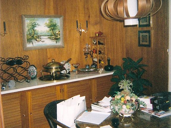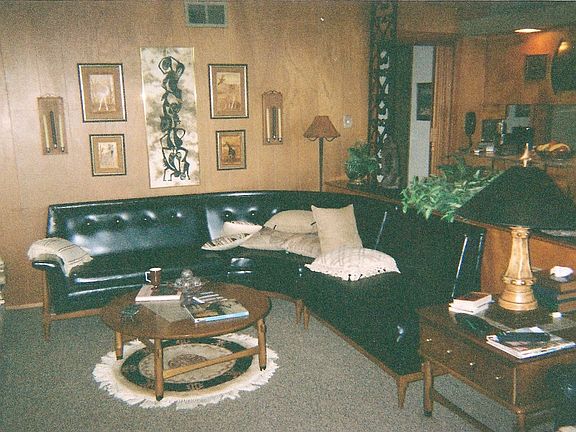 WHAT'S OLD IS NEW AGAIN! RAMBLING MID-CENTURY RANCH JUST DRIPPING IN NOSTALGIA FROM THE ELEGANT IRONWORK ENTRANCE & TERRAZO FLOORS TO THE FUNKY FIXTURES, VAULTED WALL OF WINDOWS & BAR. THIS HOME WAS MADE FOR ENTERTAINING WITH ITS 4 BDRMS, 2 FPLCS, LR. DR & DEN W/GLASS SLIDER TO THE PATIO OFFERING A SALT WATER POOL (AS-IS CONDITION) & GOLF COURSE VIEWS. FRESHLY PAINTED INTERIOR WALLS AND NEW CARPET IN LR, DEN & BEDROOMS. SUNROOM. DOUBLE GARAGE. DECORATIVE METAL FENCING AROUND THE POOL AND PATIO.