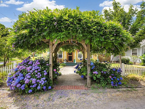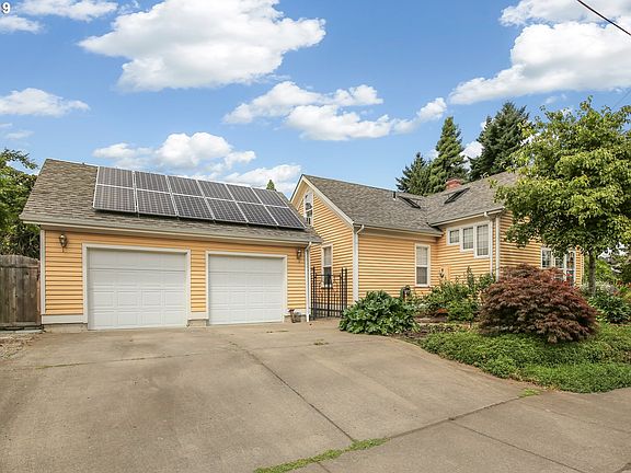 Wonderful restored farmhouse near bike paths & river! This beautiful home features lots of character that shows off well with its high ceilings & original fir wood floors. 50 yr roof & solar panels were installed 6 years ago. Oversize 2 car garage with abundant storage above. Captivating backyard has a variety of fruit bushes, and is the perfect place to relax. Across from park, and near river, trails, Pre's trail, and boat ramp.