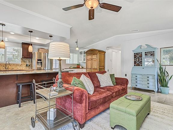Cottage Living in Laguna Woods! This quiet, charming two bedroom, two bath home evokes feelings of cozy comfort and elegance in the heart of Laguna Woods. From the front, the home appears as if it is a stand-alone home. It has ample street parking and tons of green space leading up to the front door with NO STAIRS to get in! You'll be amazed at the open feeling and high ceilings once you walk through the door. Tiled floors, fashionable grey painted walls, beautiful built-ins to maximize storage in your living room and dining space...and a gorgeous kitchen! The kitchen has been completely remodeled with a huge breakfast bar, espresso cabinets, granite counter-tops, stainless appliances and stunning pendant lights. The completely enclosed covered porch lets in tons of sunlight and can be a formal dining space, office or an additional spot to relax and enjoy life. This home boasts two good sized bedrooms, both with french door access to your personal porch with mature pine trees that allow you to feel as if you may be tucked away in the mountains. Both bathrooms have been fully remodeled with espresso cabinets, granite counter-tops and designer sinks. In one bathroom you find an easy walk-in shower or relax in a tub/shower combo in the second bathroom. With ceiling fans in nearly every room, INSIDE LAUNDRY and a CENTRAL AC unit this is a home you will want to see NOW!