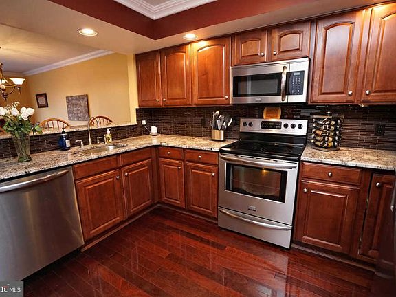 This is not your typical Banbury Crossing Townhome! This impressive townhome is meticulously clean w/ many extras including a 23'x 20' deck with a built in area for your grill and it overlooks the tranquil setting in the private backyard. A well built Garis home consisting of 3 generous sized bedrooms, 2.5 baths & an absolutely stunning finished basement w/a thermostat controlled gas stove in front of a brick hearth, and plenty of built-in bookshelves. The adjacent workshop includes a large workbench & cabinets. The gourmet kitchen boasts hardwood floors, newer appliances and granite counter-tops with a tile backsplash and under cabinet lighting. Rarely does a Banbury townhome become available that backs up to the woods & has the 2ft extension! The finished basement & extra 2 ft adds an additional 492 sq ft of living space to this home! Other extras include; hardwood floors throughout the entire first floor, maple cabinets, recessed lighting, ceiling fans, upgrade tubs, crown molding, ring doorbell, Nest thermostat & more! Pride in home ownership shows throughout this nicely decorated townhome. This is a great neighborhood community w/ lamp posts, sidewalks, & a neighboring walking trail.