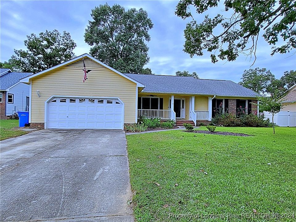 This beautifully maintained, one-owner home is ready for its next tenant! The spacious kitchen features granite countertops, stainless steel appliances, and tile flooring. Enjoy a welcoming open foyer leading to a formal living room with tray ceilings and a cozy great room with a gas log fireplace (never used). The primary bedroom offers double sinks and a walk-in closet, with an additional walk-in closet in a second bedroom. The landscaped yard is perfect for outdoor enjoyment, with a patio for entertaining and a storage building for added convenience. A double garage with an exit door provides extra storage and easy access. Don't miss this opportunity!