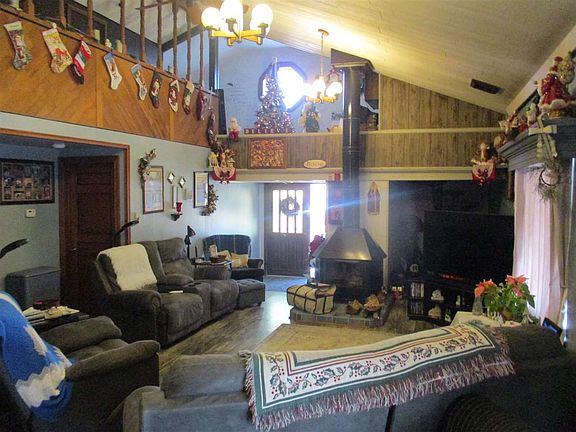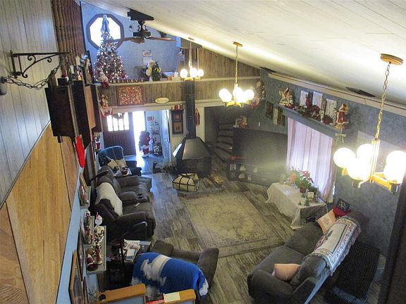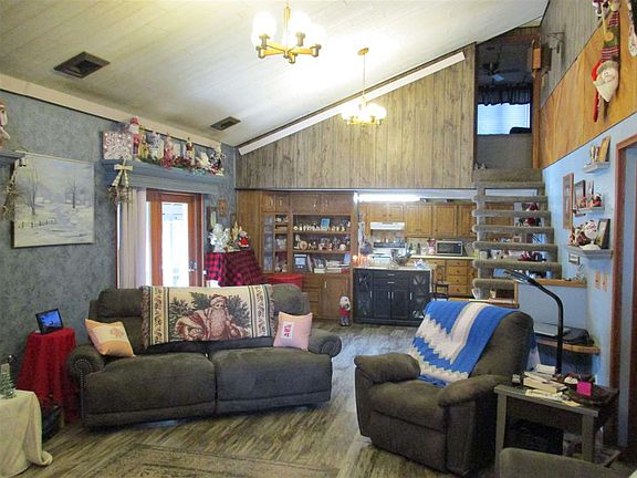 Looking for unique - this 1.5 story updated home will appeal to you. Large open living with cathedral ceiling and loft office area. Master bedroom with bath overlooking living. 2 main floor bedrooms, bath, laundry, kitchen with appliances, and dining. Covered porch and deck with built in TV and hot tub is negotiable. Large 2 car garage. Exterior has steel roof and vinyl siding for easy maintenance exterior.