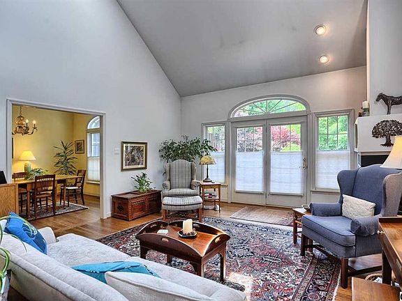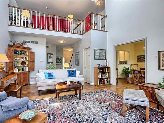 Move in & enjoy the conveniences & location of this condo. The 2 story living room is spacious enough to entertain, yet cozy enough to relax in front of the gas FP.. and LR / DR. have bamboo hardwood floors. The excellent floor plan includes 1st floor owners' suite w/ private deck overlooking garden & trees to the rear. The cook will enjoy open kitchen w/gas cooktop, storage, desk space & bright bay window in dining area. Upstairs find two bdrms w/walk-in closets, loft area w/bookcases & desk ready to use