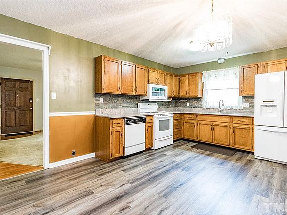 Spacious ranch plan in quiet Garner community. Hardwood floors, new LVP in kitchen with granite, wood cabinets ,and stone backsplash. Large tile shower in owner's bath with jetted garden tub. Nice size secondary bedrooms with good closet space. A great size deck overlooks the .36 acre fenced in backyard to enjoy outdoor living. Detached 1 car garage and an additional 2 stall building for more storage space.