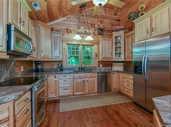 This very private, high quality, and updated log home has 367 ft. of frontage with a dock on Lake Lanier. It is a tall structure with 2200± square feet on three levels with a 147± square foot sleeping loft within the peak of the 16-foot-high living room. The high ceilings, open spaces and floor to ceiling stone fireplace emancipate the spirit of the all wood interior. Bound to the west and south by broad decks, a stone walkway leads to the main level. On this level is the kitchen with granite countertops and dining area; separated from the great room by a 2-sided stone fireplace. A powder room and the master bedroom suite lie to the east of the living room. The lower level features very high ceilings and a rustic den, kitchenette and another fireplace flanked by glass doors that lead to a stone patio shaded by the upper deck. There are also two additional bedrooms, a bath, laundry and utility area on this walkout level. Being a Smarthome makes it an ideal vacation home or rental.