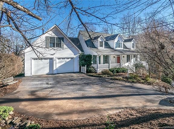 Spacious home in Flat Rock located in desirable Claremont neighborhood! Enjoy year-round views from the covered decks & three levels. Main level formal living & dining rooms, tall ceilings, crown molding & fireplace, beautiful custom cabinetry, well equipped kitchen. Two bedrooms & bath on upper level. Lower level has many possibilities - studio, extended guest quarters, office, workshop, etc. Two-car garage on main level + one-car garage in the basement, elevator, generator. Private gate access to Mine Gap Road.