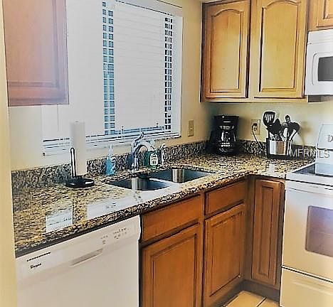 Immaculate two bedroom/two bath flat townhome. Spanish tile roof sets off this pristine home. The kitchen offers solid oak custom cabinets with granite countertops. Track lighting compliments the kitchen and draws your attention to the planters ledge that joins the kitchen and dining room. The pass through into the dining opens this space. The high volume ceilings bring depth to this area while the perfectly situated fireplace provides a warm ambience. Sliding glass doors give entrance to the porch where you will view a well landscaped area that provides a private picturesque site. The master has a large window that welcomes natural sunlight into your bedroom. With an en suite and deep closets this area is complete. The second bedroom is spacious with a large oversized window and a walk in closet. Within the home you will find decorative planters ledges in each room along with custom wood molding. The private community offers a pool that is for "residents only". The community association offers exterior maintenance, landscaping, roof, termite bond, and reserved parking. The master HOA also offers amenities for all lifestyles. Throughout the community you will find jogging paths, nature trails, four playgrounds, BBQ area with covered pavilion at the lake. Volleyball, basketball, tennis courts and two pools makes this community a perfect place for a staycation where you are transported back to nature. Clubhouse for community events and also available to rent for private events. Turn Key ready.