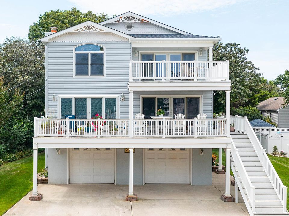 What an amazing home in a beautiful location with water views from all 4 decks and multiple spots in the home to view the water. This home 4 bedroom and can be a 5 bedroom home with the installation of one door. The home was custom built by the owners well thought out and a well-balanced home. Let’s start with ground level and an amazing oversized two garage with work bench, plenty of storage. A first floor heated and air-conditioned bedroom that could be used as with it own private full bath. Up the steps are where you will find the main living space and that can also be accessed by the front steps to an immense deck that spans the front of the home with water views. We have a gracious sized living room with wood burning fireplace, beautiful wood floors, large over sized eat in kitchen with a granite counters and an island for causal dining and plenty of room for a full sized table and a walk-in pantry. Down the hall is a full bath, guest bedroom and rear deck with great views a grill and if you look down your whole house gas generator put in in 2021. The third-floor front of the house has an outside deck, great views and a office/sitting room or possible bedroom if you pop a door in, master bedroom with dual walk ins, and a huge bathroom with separate soaking tub. Down the hall is a full bath, guest bedroom, hall washer and dryer area and a rear deck with views. The home is owner occupied with limited showing times so check notes for those please. Beach access is close by, the sunset views are amazing. Call today you'll be sad if you don't.