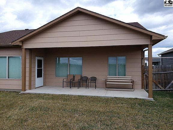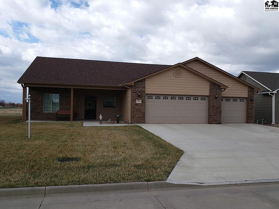Custom-built in 2016, this zero-entry home has 3 BR, 2BA with 1,342 sq ft all on one level! The garage has a separate 3rd stall/workshop with an additional mower garage at the back plus a built-in storm shelter. Exterior features include 50-year impact resistant shingles, large covered porches both front and back and the fenced backyard with a 12 x 12 storage building.