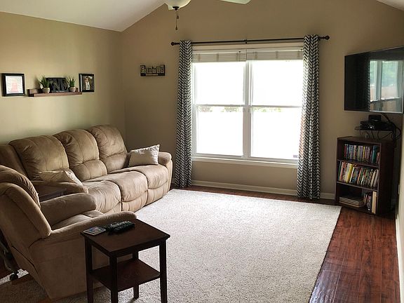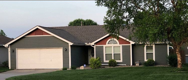 Well cared for 3 bedroom/2 bath home in quiet cul-de-sac. Home has open kitchen, dining room, and living room. Vaulted ceilings in living room, bedroom 1, and master suite. Large master suite includes walk in closet and patio access. Fenced in backyard with storage shed and raised garden. Close to Deerfield Elementary and easy access to I-70 and Iowa St. All appliances in home stay.