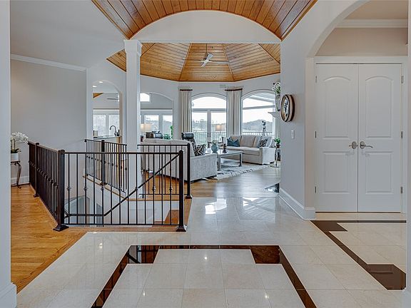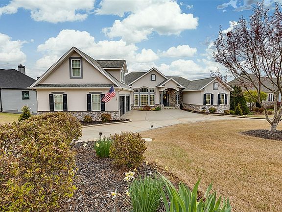 Indulge in the epitome of refined living with this exquisite custom-built residence nestled within the prestigious enclave of Cross Creek Plantation. Poised majestically overlooking the 17th fairway and a serene pond, this home embodies unparalleled sophistication and meticulous craftsmanship. Step through the grand foyer adorned with opulent marble floors and a pine barrel ceiling. You will discover the architectural harmony of lofty ceilings, bespoke crown molding, and expansive baseboards, elevating every corner with regal grace. Be enthralled by the octagonal great room, where a soaring 22-foot pine ceiling and expansive windows immerse the space in natural light, offering panoramic vistas of the tranquil pond and verdant golf course beyond. Seamlessly integrated, the great room flows into the dining area, kitchen, and inviting breakfast/sitting alcove, forming an idyllic setting for sophisticated gatherings and soirées. Savour the culinary arts in the gourmet kitchen, adorned with alder wood cabinets, sumptuous granite countertops, and an array of premier appliances. A Butler’s Pantry, replete with a built-in hutch and granite surfaces, stands ready to cater to your every need, while a walk-in pantry ensures ample storage for epicurean delights. Retreat to the primary suite, where a luminous tray ceiling and French doors leading to the deck create an ambiance of serenity and repose. Luxuriate in the spa-inspired bath, complete with his-and-her vanities and an oversized walk-in shower, offering a sanctuary of indulgence and relaxation. The lower level beckons with a haven of leisure and entertainment, boasting a graciously appointed recreation room, accented by a second gas fireplace and a wet bar with a beverage fridge. Three guest rooms, a craft room, and abundant climate-controlled storage complete this level, offering versatile spaces for every pursuit.