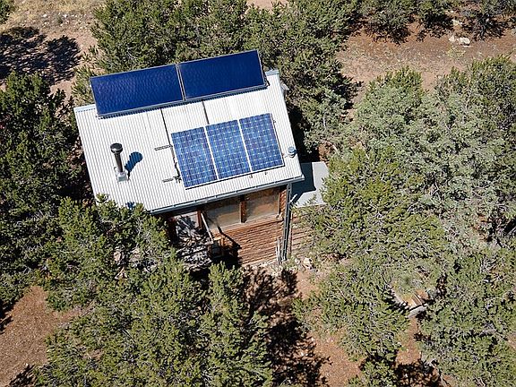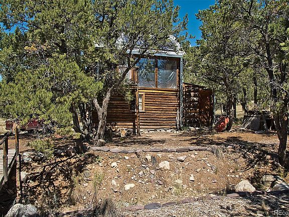 Charming rustic, 1 bed, 1 bath log cabin on the most spectacular lot at the very most North East corner of the Town of Crestone. This is a very special location! This property has 3 lots consisting of .61 acres and the corner meets BLM land! Imagine 100,000's of acres of public land out your front door stretching out along the Sangre de Cristo Mountain range. The center of town is within easy walking distance. This log cabin is off-grid. It offers a professional solar system, propane, it's own private well, and septic system. There are no POA fees or utility bills. This cozy log cabin has a full bath and kitchen/living space on main level: upstairs has large bedroom with big windows facing south and many shelves for your belongings. A small balcony offers views of the natural glory of the area. The interior logs throughout will make you feel you are in a cabin of old. The lot offers mitigated trees, a bridge over a dry creek bed( can flow in heavy rains), a large metal garage for storage, a garden shed with extended roof, and a storage shed for your extra belongings, garden beds, and private natural beauty throughout. The possibilities are endless. It would make the ideal retreat or vacation home or use as a permanent home. Call the listing agent for more details and view the photos to see the natural splendor surrounding this cabin!