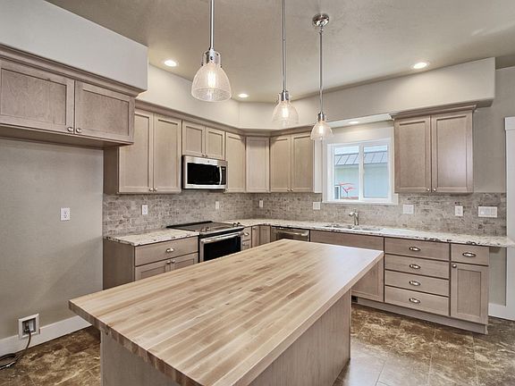 Brand new two story townhome within walking distance to downtown Fruita. Large living room flows into kitchen and dining. Kitchen with Karman Maple Cabinets, Quartz countertops, butcher block counter top on island, separate pantry and stainless steel appliances included. Half bath downstairs & separate storage area under stairs with access to crawl space. Living room with Wood Laminate Historic Oak Timber. Tile in entry, kit, baths & hall to bedrooms upstairs, carpet in bedrooms and walk-in closets. Both bedrooms have their own walk-in closets w/built in shelving and rods. Master has a walk-in shower with double vanities and 2nd bedroom has tub/shower combo with one vanity. Detached garage w/unfinished storage area above accessed by pull down ladder. Back yard has small yard with grass maintained by home owner. Front and side yards are serviced by the HOA.