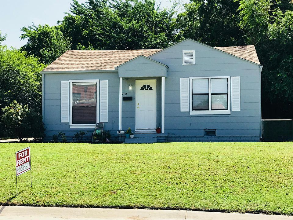 2 bed, 1 bath, Centrally located home next to Midwest City Elementary School and Midwest City High School football stadium. Local restaurants, shopping and park areas are within walking distances. Location is ideal next to I-40 for a short commute to Tinker AFB, OKC Metro area, work and Rose State college. This updated home has new flooring, carpet free with recently serviced central heat/air, new shingle roof and gutters and interior/exterior paint . A utility room with both a washer and dryer appliances is right off the kitchen that has a gas range stove and refrigerator. Huge backyard, cable/internet ready and many other features that will make this your new home. Does not have fenced yard but large grassy area. Outdoor tandem parking. All pets must be approved by landlord with pet fee and monthly pet rent. Please call/text for showing only. Please do not disturb existing tenants. House will be available October 1st, 2022 and is occupied until the end of September. Tenant will be responsible for utilities and yard maintenance. Non-smoking and Renter's Insurance Required