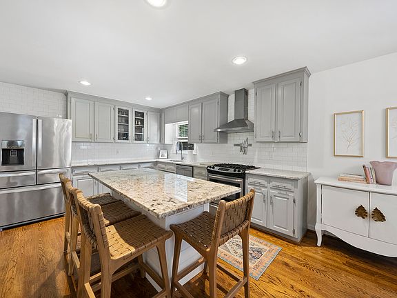 A rare find! Immaculate, updated ranch with in-ground pool, spacious backyard, minutes from North Hills shopping & restaurants. Hardwood floors throughout with tile in beautifully updated bathrooms. Kitchen is open & inviting with granite & subway tiles, solid wood cabinets, center island, & stainless steel appliances. Dining area makes for a perfect sitting room with fireplace. Detached space is currently used as an office, but would make a perfect pool house or could be used as additional storage.