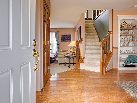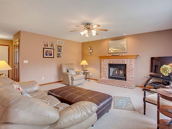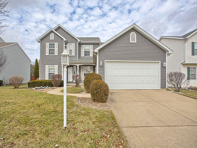 Great 2 story home in Prairie Fields subdivision has much to offer! Open floor plan with a great balance of formal and informal spaces great for every day living and entertaining. Spacious family room with fireplace, first floor office, formal dining room with hardwood flooring, spacious eat-in kitchen with plenty of cabinets and an abundance of natural light. Second floor master suite with vaulted ceiling and private bath with dual vanities. Full basement offers endless possibilities for future living space and is currently partially finished for use as a rec room. No backyard neighbors, instead rows of trees. Don't let this one get away, call today!