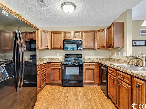 This beautiful home is conveniently located within minutes to Market Common, the beach, entertainment and all that Myrtle Beach has to offer! This 3 bedroom 2 bath home has a vaulted ceiling in the living area which makes it feel so much larger and allows plenty of natural light. It has a split bedroom plan; all three bedrooms are spacious. Beautiful kitchen offers granite countertops; large dining area; and breakfast bar. There is laminate flooring throughout and screened in porch. Partially furnished with an option for buyer to negotiate items if they desire. Offers 2 car garage and an excellent lot with only neighbors on one side and large courtyard on the other. Low HOA with access to pool and playground. Beautiful home in excellent condition; come take a look! Vacant and easy to see!!