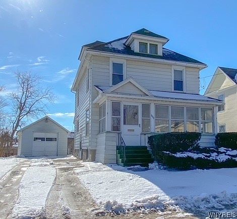 Welcome to 512 Ellicott St. This great city home has amazing features such as red oak hardwood floors throughout that leads to a formal dining area and into a wonderful living room. At the front of the home you'll find a nice sized enclosed porch for enjoying all day sunlight. Just through the rear entrance is a marvelous mudroom that provides an opportunity to have 1st floor laundry with just a few changes. Located upstairs are 3 inviting bedrooms with a comfortable full bathroom. In the full height basement there are the current laundry hookups along with plenty of wall space that could make a great shop space or simply dry storage. You also have a half bath in the basement as well another on the 1st floor. Outside there is a 1 car detached garage with an automatic garage door for no hassle vehicle storage in the colder months. Overall, this home provides an amazing bright space and charming classic features at a great price! Offers, if any, due Monday, March 6th at 1pm.