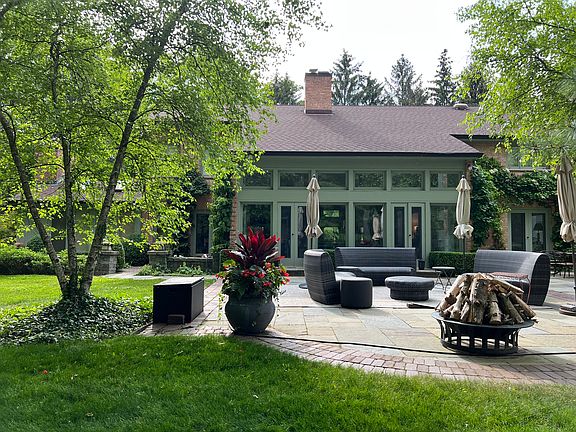 Located in East Lake Bluff, less than one block from the lake, on one of Lake Bluff's most coveted streets, sits this creation of acclaimed architect Balfour Ames Lanza. True to his signature, Lanza brings this 1.5 acres of parkland setting into the home through wall-sized windows and abundant skylights. The first floor features a generous breakfast room-sunroom off the kitchen with vaulted ceiling and skylights. The 17' x 14' dining room and the 23' x 18' living room lead to a 22' x 16' family room with brick fireplace, wet bar, and more skylights! All the natural lighting plays off the ceiling angles and well-placed brick interior walls. Completing the first floor is a versatile room, plus bath, that can serve as a 4th bedroom or office. Three sets of French doors in the living room and dining room open to a magnificent, oversized, blue stone terrace surrounded by a wooded setting. Only the sounds of nature are heard. Upstairs boasts a spectacular, redesigned primary suite with bedroom, large bathroom (radiant floors), and even larger walk-in-closet. There are hardwood floors throughout the home. The entire first floor and nearly all the second floor have been freshly painted. The finished lower level adds lots of lounging and recreational space. Mechanicals are 3-4 years old. Grounds are professionally landscaped. ENJOY YOUR PRIVACY!