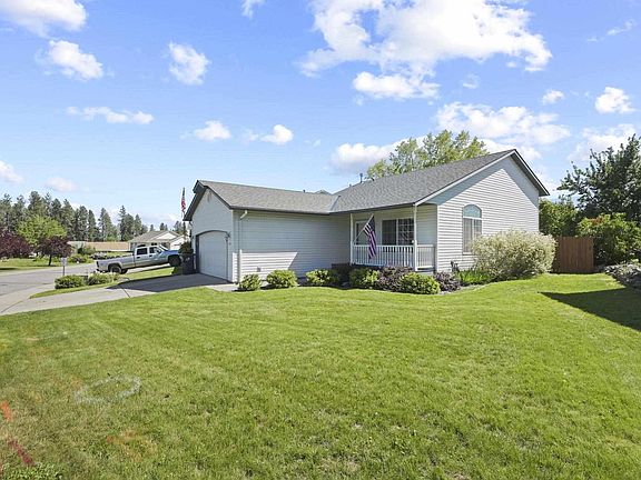Great location opposite a park for this updated front to back 3 Level home with a porch out front. All the kitchen stainless steel appliances plus commercial heavy duty washer + dryer are included. (ref washer & dryer are under 4 years old) Spacious eat-in kitchen is open to the large family room. Laminate flooring + cathedral ceilings. 4 bedrooms, 2 baths. The good sized primary bedroom has a private door into an updated bathroom with granite counter, tile floor + tile around tub/shower, updated fixtures + lighting. Forced air gas and central air conditioning to keep you cool in the summer. Very private fenced back yard with sprinklers + patio for relaxing. New 30yr Arch Grade roof in 2016. Truly move-in ready. HOA $200/yr. Close to ALL Schools. 18 Mins to Fairchild, Spokane Airport & Spokane. See the link to the 3D walk through tour