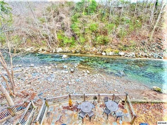 BEAUTIFUL RIVERFRONT HOME IN GATLINBURG!! Very successful investment rental property! Fantastic 3 level, 5BD, 5 full and 2 half BA home that's less than a year old with so many unique and outstanding features! Large open concept great room on the first floor with lots of windows and access to the outstanding riverfront patio complete with dining tables, grill and fire pit. Very spacious living room area, game table, impressive dining area with wall of windows overlooking the river. Beautiful kitchen with solid countertops and island is complete with everything you need to prepare large meals! Dining table seats 12, plus stools at the kitchen bar for 3 more. This home includes 5 very spacious bedrooms-each with private bath. One bedroom is located on the 1st floor with a queen bed. Other bedrooms are on the upper levels. Game room/den on upper level complete with games, TV, sitting area and half bath. Gross income for only eight months (not including December) over $70K--projected to do much more! Owner rents on VRBO. Being sold completely furnished with very high quality and tasteful furnishings and décor. Wonderful location--You can leave your car parked and make the easy 10-15 minute walk into Gatlinburg, avoiding traffic and parking fees. The trolley stop is only a 5 minute walk. (*Property tax amount on tax record is for all three houses on the same parcel at this time)
