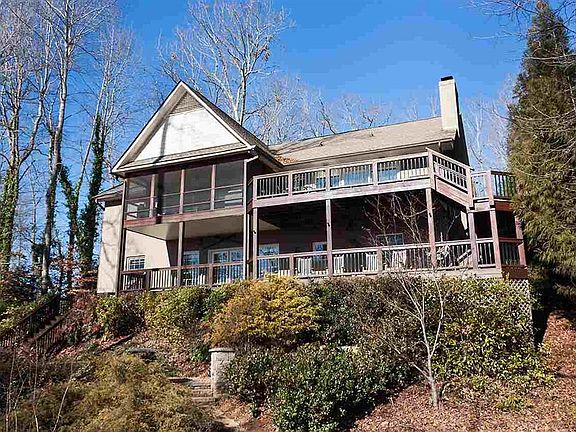 An irreplaceable waterfront setting featuring extensive hardscape with shoreline improvements that can't be reproduced within the current lake management guidelines. Enjoy a winding flagstone path, natural boulder terrace, spacious lakeside seating area and quaint English ivy landscape to name a few. This waterfront gem is ready for immediate occupancy and conveniently located within the city limits for easy access to restaurants and shopping, public sewer, trash service and more. Nestled amongst mature hardwoods in an area great for weekend, seasonal or a lifetime of memories. There are four spacious bedrooms, three full and one half baths, two lakeview gathering rooms and outdoor living galore. A bright, open floorplan features a living room combined with the dining, an oversized screened porch and loads of low maintenance deck and patio space. Completely renovated in 2010 with a rebuilt pier, replaced roof and circular drive, new cottage design with a completely new kitchen, baths, flooring and fixtures. The laundry offers loads of storage and a versatile butlers pantry design. The house favorite is the oversized screened porch with almost 200 square feet of lakeview and a vaulted ceiling. On the lower level are three bedrooms, two spacious baths with tile showers and a secondary living/recreation area with a half bath for easy access off the lake. Another specialty feature is a large bunkroom, easily converted for multiple sleeping space, a workshop or exercise room. Rip-rap protected shoreline, oversized covered dock with boatlift and PWC lift, all strategically positioned to face the open water and mountain views. Find enjoyment for the entire family with a deep water dock and 200'+ of waterfront on a wide water bay. Immediate access to the main channel, expansive mountain views in the distance and very little boat traffic or wake at your dock. Community offers a private boat launch within walking distance. Located less than one-two miles to shopping, restaurants and medical. Ten minutes to Clemson University.