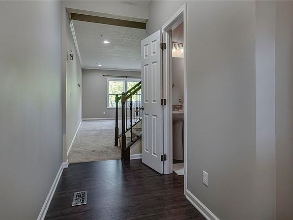 This less than 1 year old townhome is immaculately clean! End unit with a large lot. Upgraded granite, flooring, paint and lighting. Open floor plan, 9 foot ceilings, and a large island. Finished basement with powder room rough-ins already finished/enclosed. Master bath has double bowl sink, large soaking tub and a separate shower. Upstairs you will find 3 large bedrooms, 2 full bathrooms, as well as the laundry room. This home has approximately 2300 sq. ft of living space! This turn key home is conveniently located near 376, the airport, shopping and the Moon Area schools.