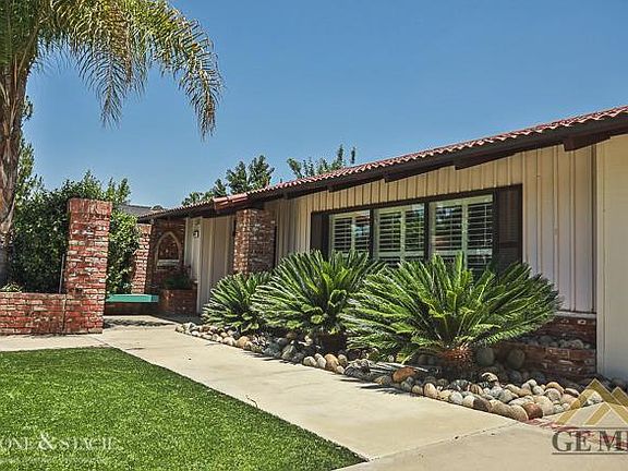 Come see this Spanish style home in desirable Stockdale Estates. Evergreen synthetic turf and a dry river rock garden add to the curb appeal and easy care yard. The private Southwestern style backyard features abundant succulent and drought tolerant foliage all on timed sprinklers. Enjoy spending lazy afternoons relaxing evenings under the stars around the refreshing pool, spa and whimsical yard art. Relax or entertain in the formal living room with dark hardwood flooring and custom plantation shutters. The upgraded kitchen has newer built-ins, custom fixtures and bar. The breakfast area overlooks the picturesque pool and patio. Two tone paint throughout adds to the dramatic fee of this home. The large master bedroom has a rock fireplace and private access to the spa. Let this home be your own private Hacienda!