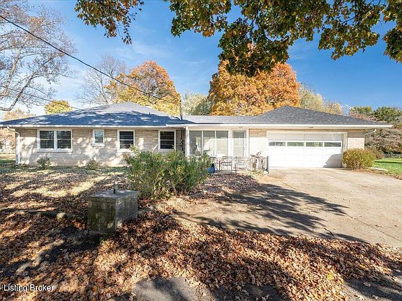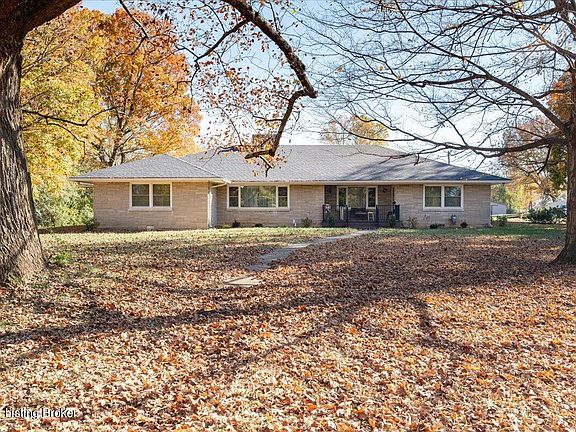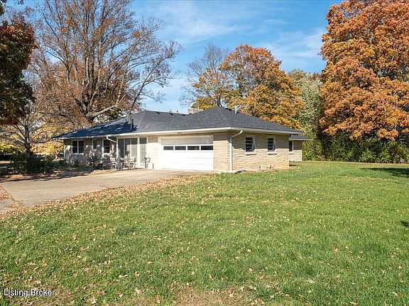 Welcome to 512 Kentucky St! Located just blocks from Main St LaGrange, Springs Park and downtown LaGrange, this home sits on 1.16 acres with what may be the largest Tulip Poplar tree in Kentucky in the front yard. Boasting 4 spacious bedrooms, 2 and a half baths, this stone ranch home is expansive with just under 3500 sq ft on the main floor. A majority of the home features hardwood floors and newer windows. This home has already received new HVAC, a roof, composite decking installed on the front porch, new landscaping and new storm doors at front entry. The electrical and plumbing have been updated as well. All updates have been completed within the last 3.5 years. There are 2 entrances off the front porch, one entry leading to living room, while the other entry leads to a smaller living space or can serve as the 4th bedroom with accessible closet and half bath attached. The laundry room, an additional flex room and staircase leading to the attic complete the right side of the home before exiting to a sunroom between the house and garage. The attic has flooring and provides ample space for storage. The middle of the home includes an eat-in kitchen, dining room, living room and family room featuring a wood-burning fireplace and large picture windows peering to the fresh concrete patio and backyard space accessible from the family room and sunroom. On the left side of the house, 3 large bedrooms a hall bath and bathroom accessible from 2 bedrooms complete this charmer. The 500 sq ft unfinished basement houses the mechanicals and the access to the crawlspace for the remainder of the house. This home has lots of character and charm and is truly a must see property! Schedule your showing today!