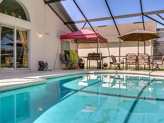 Price improvement! Gated community, 3 bedroom pool home with tropical landscaping and pavered driveway. Step inside for immediate views to the screened pool, offering year round enjoyment of Floridaâs gorgeous weather. The foyer leads to an open great room and kitchen. The kitchen features newer matching appliances, large cabinets, pantry and eat-in bar with adjacent dining room. The master suite with vaulted ceilings overlooks the pool and backyard, and the master bath includes dual sink vanity, soaking tub and glass enclosed shower. Located close to shopping, dining and easy access to the Disney attractions area, I-4, SR-429 & SR-417. Schedule your showing today!