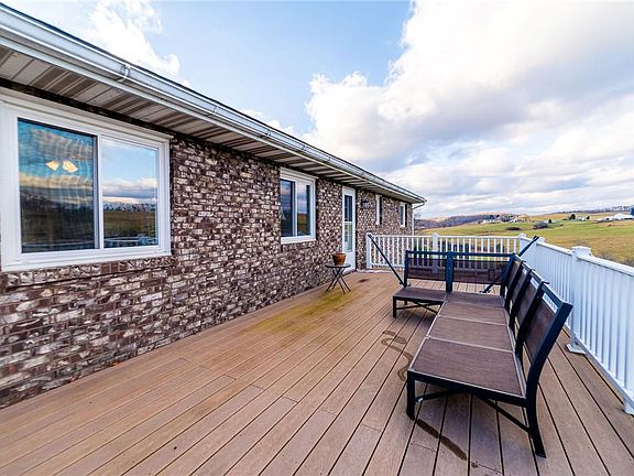 You'll enjoy the amazing country views from this 3 bedroom brick ranch home situated on 2+ acres in East Franklin Township. You're surrounded by country landscape while still being close to 28/66/422 and all the local amenities. Updates throughout including newer manufactured hardwood floors, renovated bathroom with double sinks, a finished basement, wood trim, and much more. The lower level was recently finished and could be used as a fourth bedroom or a game room with the possibility of a second full bathroom. A wraparound composite deck is the perfect spot to sit and relax or entertain! This one is a must see!