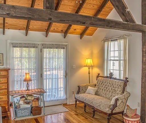 "Country Road.... Take Me Home... To The Place, I Belong...." Authentic country farm house with 5 country acres in the sleepy New England village right across from the country store. Large barn for your horses and 2 other garages. Sweet front porch for morning coffee or adult beverages at the end of your day. Bright & sunny well loved home has cozy den/bedroom on first floor with wood stove, huge screened in porch with slate flooring adding tons of 3 season living space, full bath on both floors. The master bedroom is right out of Yankee Magazine !! Cathedral beamed ceilings, walk-in closet and french doors to your own upper deck overlooking a babbling brook & barn. All updated mechanicals have been done for you. Walk up attic & walk-out basement too. Some cosmetics will make this home shine.