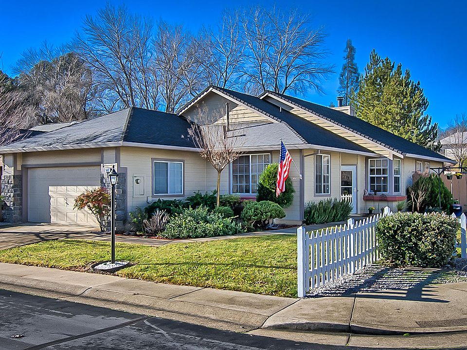 Highly sought after Shasta Hills Estates 55+ gated communtiy with salt water pool, dog run, club house with excersize room.Beautifully updated with gorgeous real wood flooring, new solid stone kitchen counters, the GE appliances are only 1-2 years old! The Bali stringless blinds are all new and so are the ceiling fans. Great location near shopping and freeway access. CB715